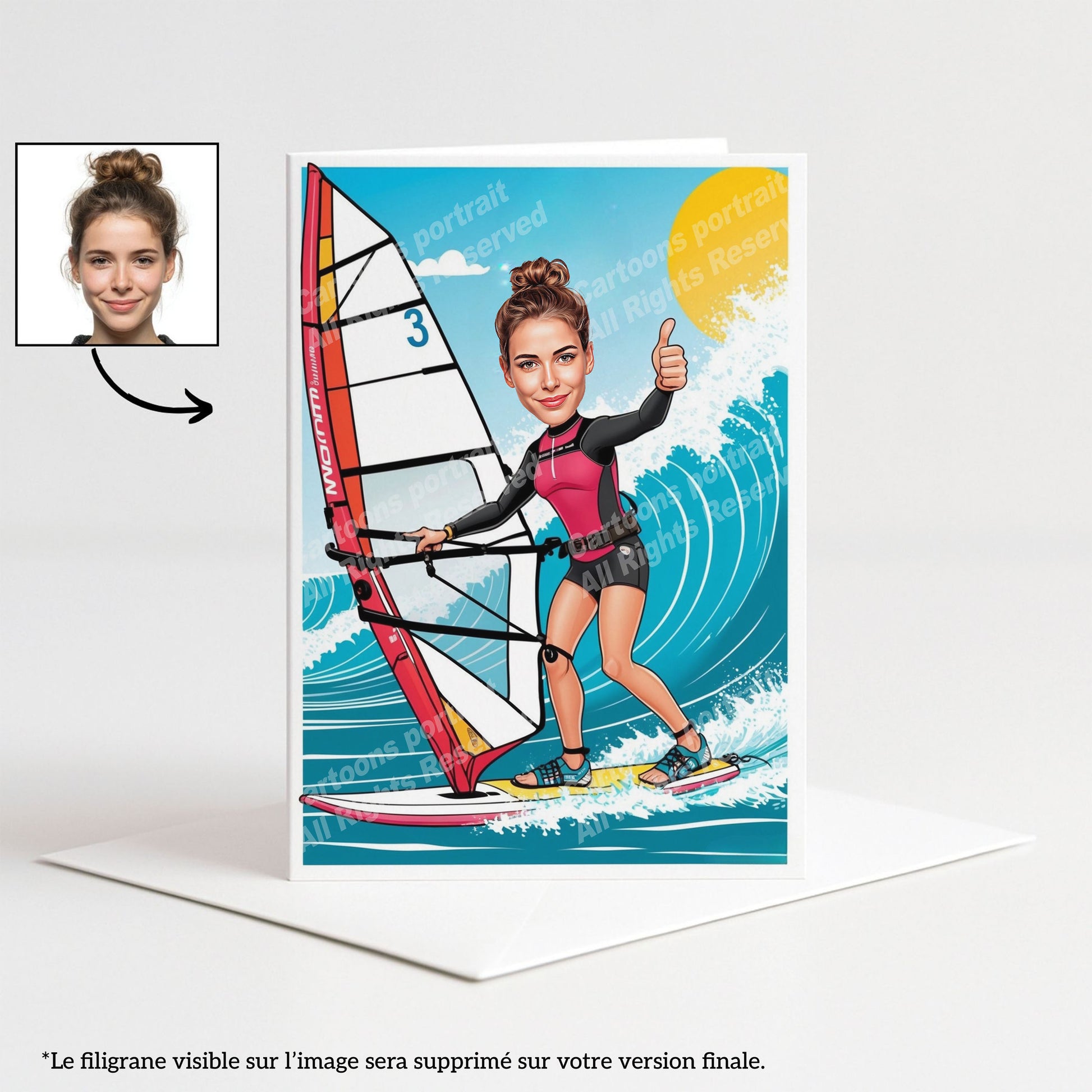 Looking for a unique windsurfer gift? Send us a photo and we’ll create a personalized windsurfer cartoon caricature with a fun ocean-and-wind vibe. Fully customizable with unlimited revisions, perfect for a birthday gift, trip memory, or water-sports lover decor.