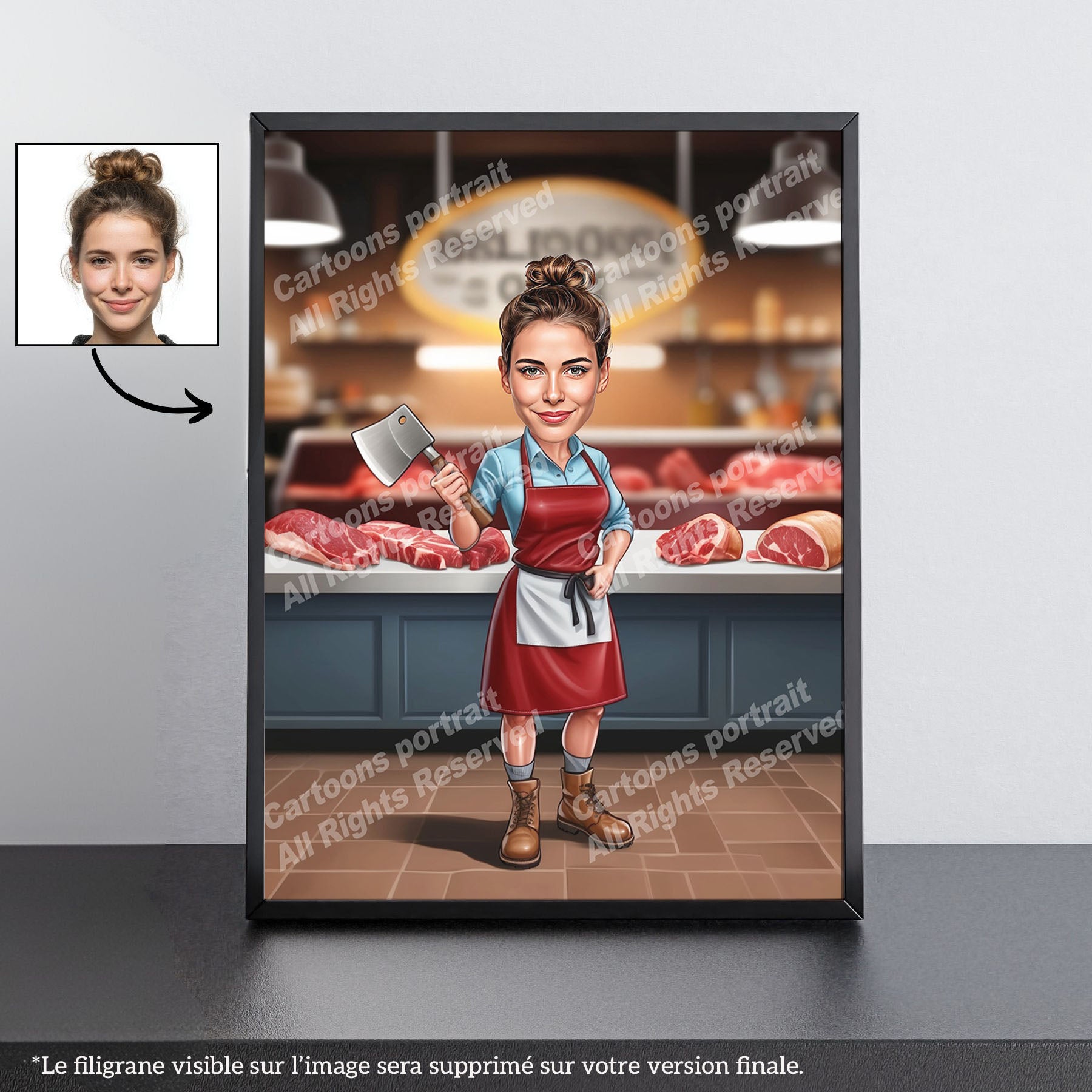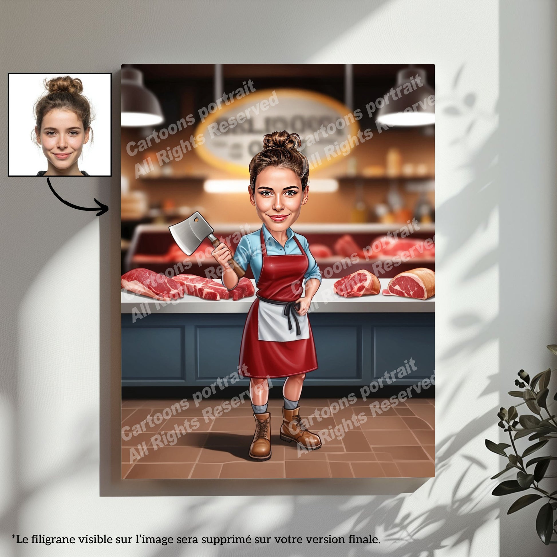 Looking for a gift for a butcher? Our personalized caricatures are the perfect choice! Transform a simple photo into an unforgettable keepsake.