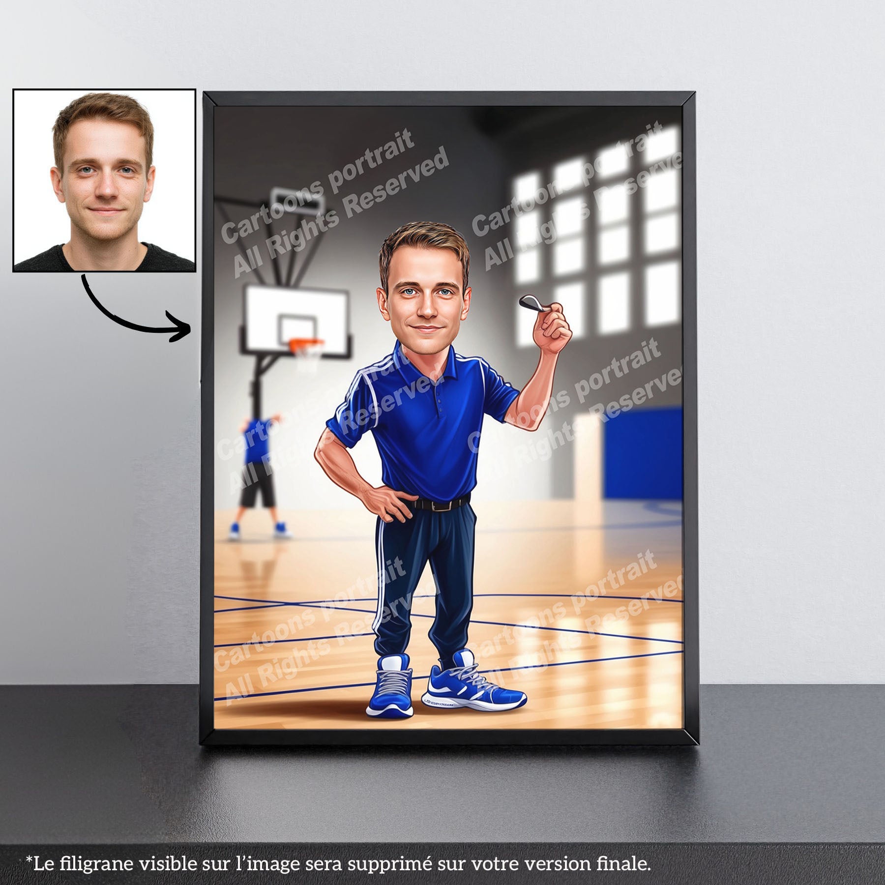 Looking for a gift for a basketball coach? Our personalized caricatures are the perfect choice! Transform a simple photo into an unforgettable keepsake.