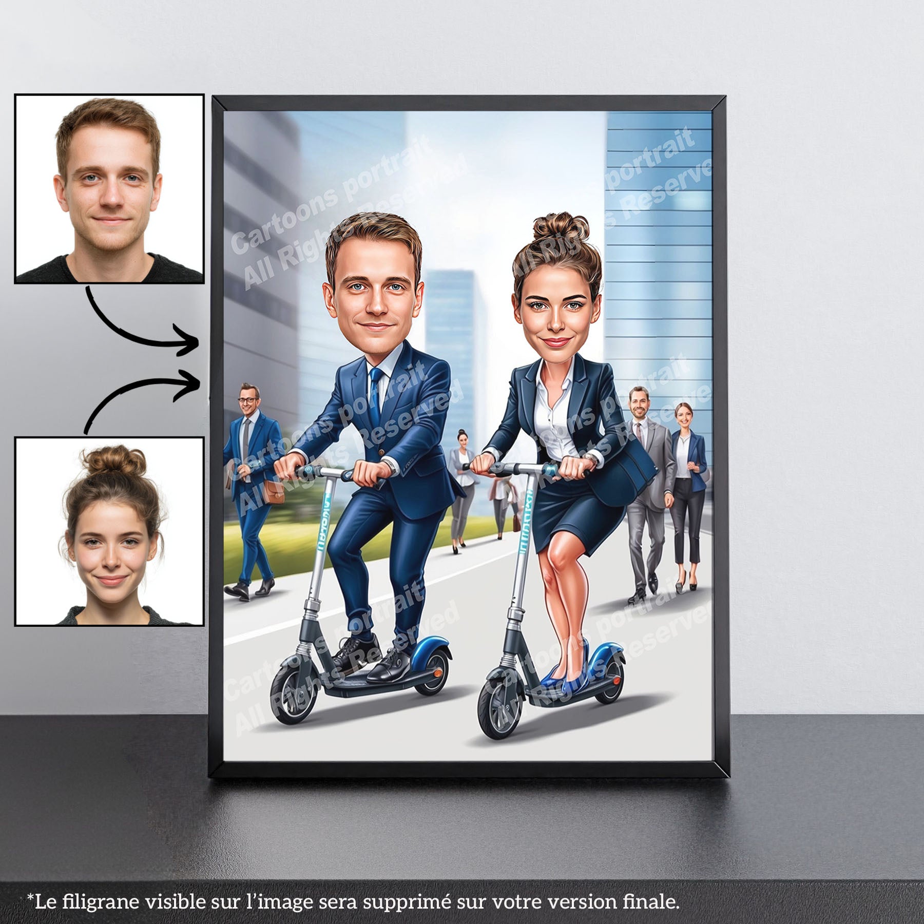 Looking for a gift for a scooter enthusiast? Our personalized caricatures are the perfect choice! Transform a simple photo into an unforgettable keepsake.