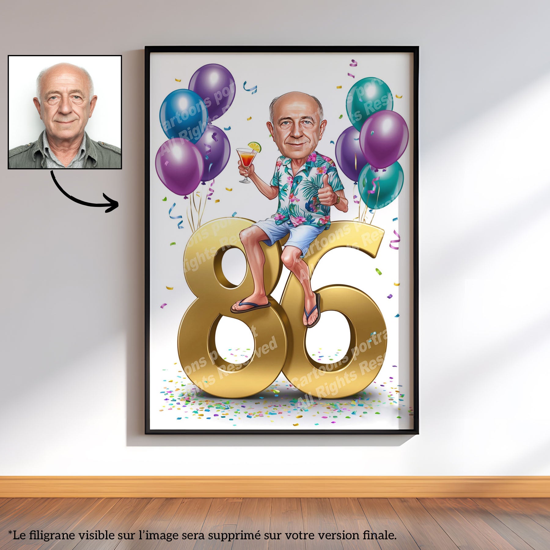 Vous cherchez un cadeau pour fêter les 86 ans d’un proche ? Nos caricatures personnalisées sont le choix parfait ! Transformez une simple photo en un souvenir inoubliable.