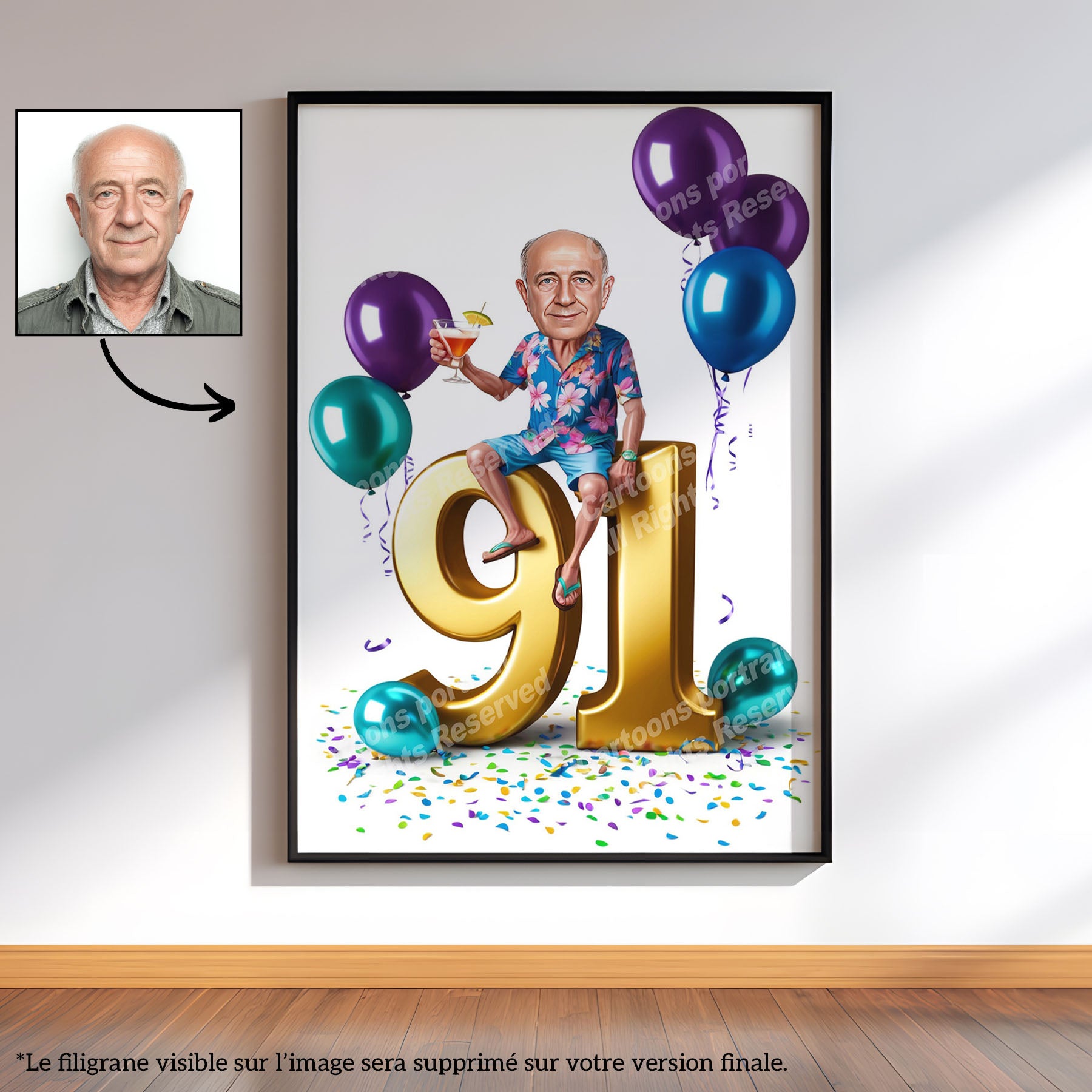 Vous cherchez un cadeau pour fêter les 91 ans d’un proche ? Nos caricatures personnalisées sont le choix parfait ! Transformez une simple photo en un souvenir inoubliable.