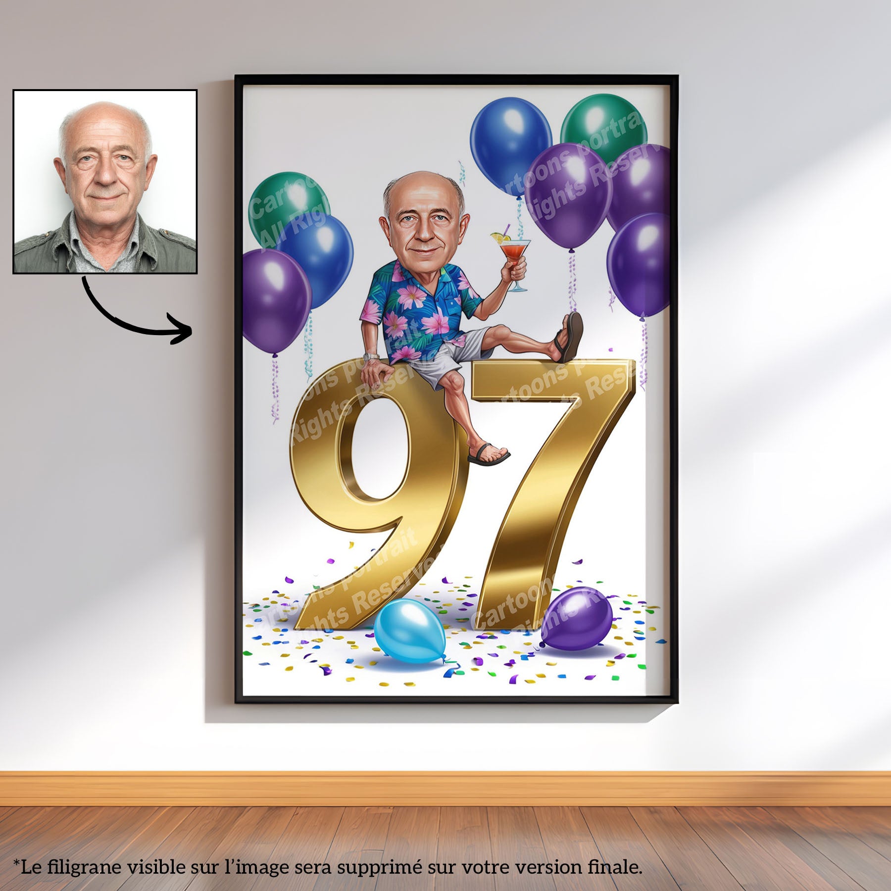 Vous cherchez un cadeau pour fêter les 97 ans d’un proche ? Nos caricatures personnalisées sont le choix parfait ! Transformez une simple photo en un souvenir inoubliable.