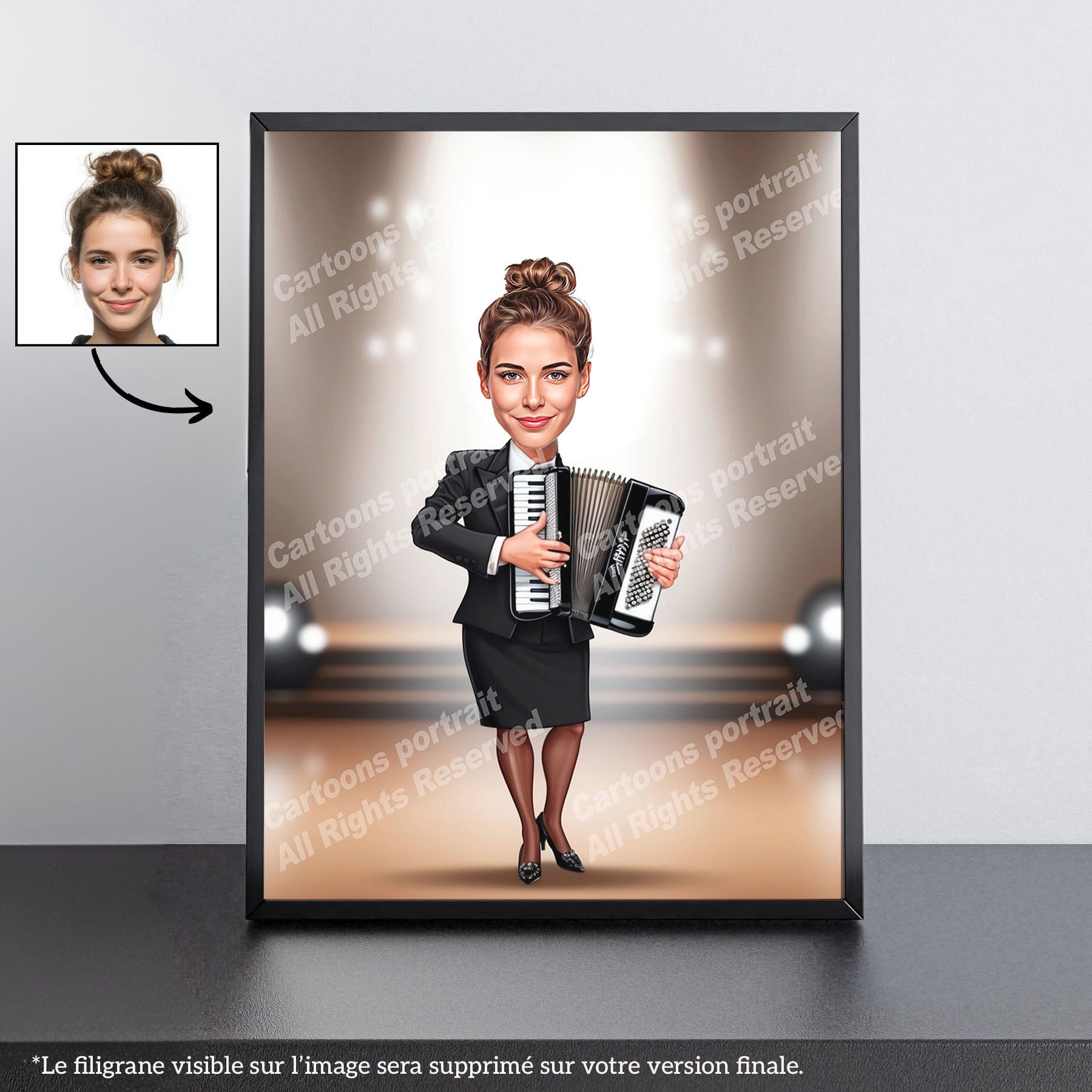 Vous cherchez un cadeau pour un accordéoniste ? Nos caricatures personnalisées sont le choix parfait ! Transformez une simple photo en un souvenir inoubliable.