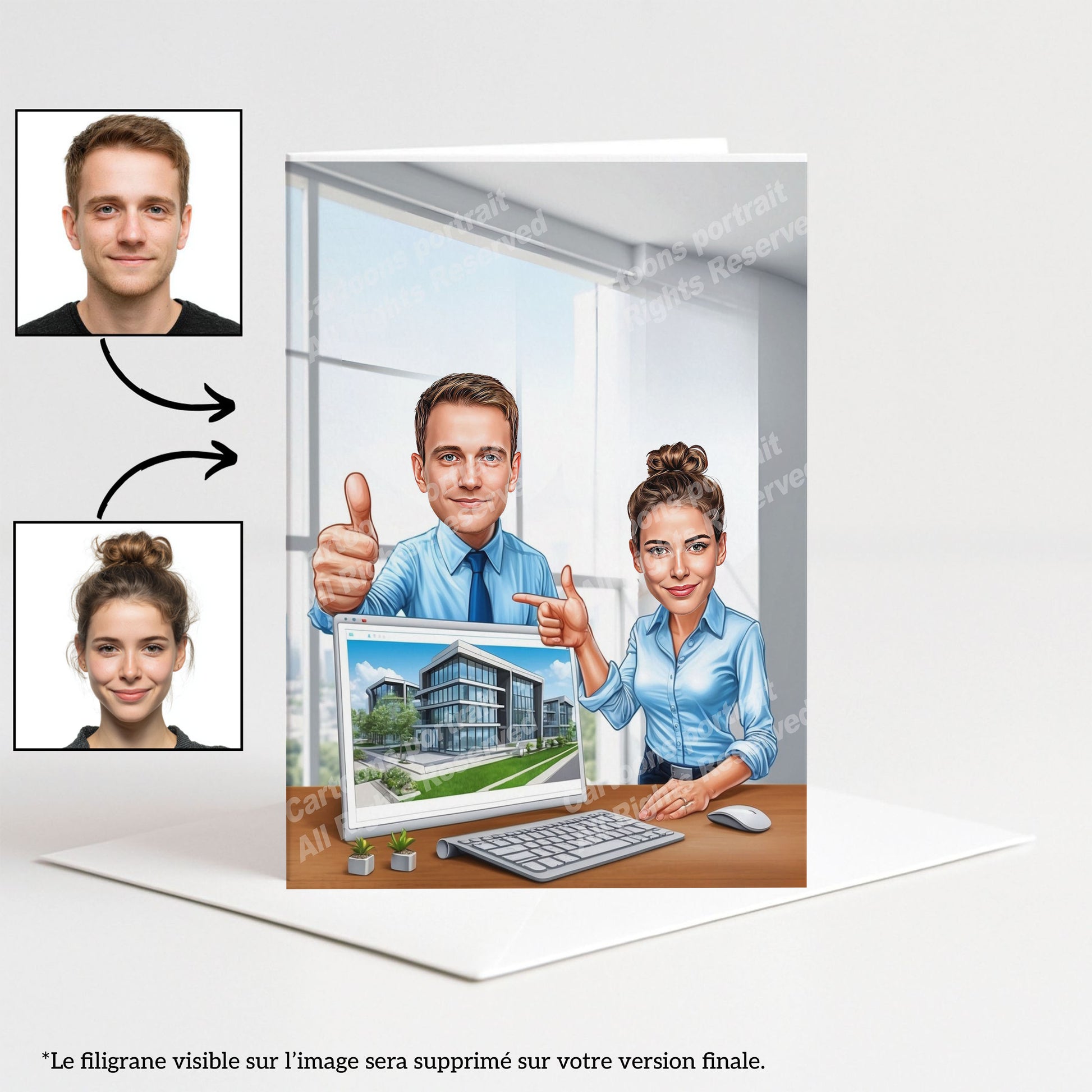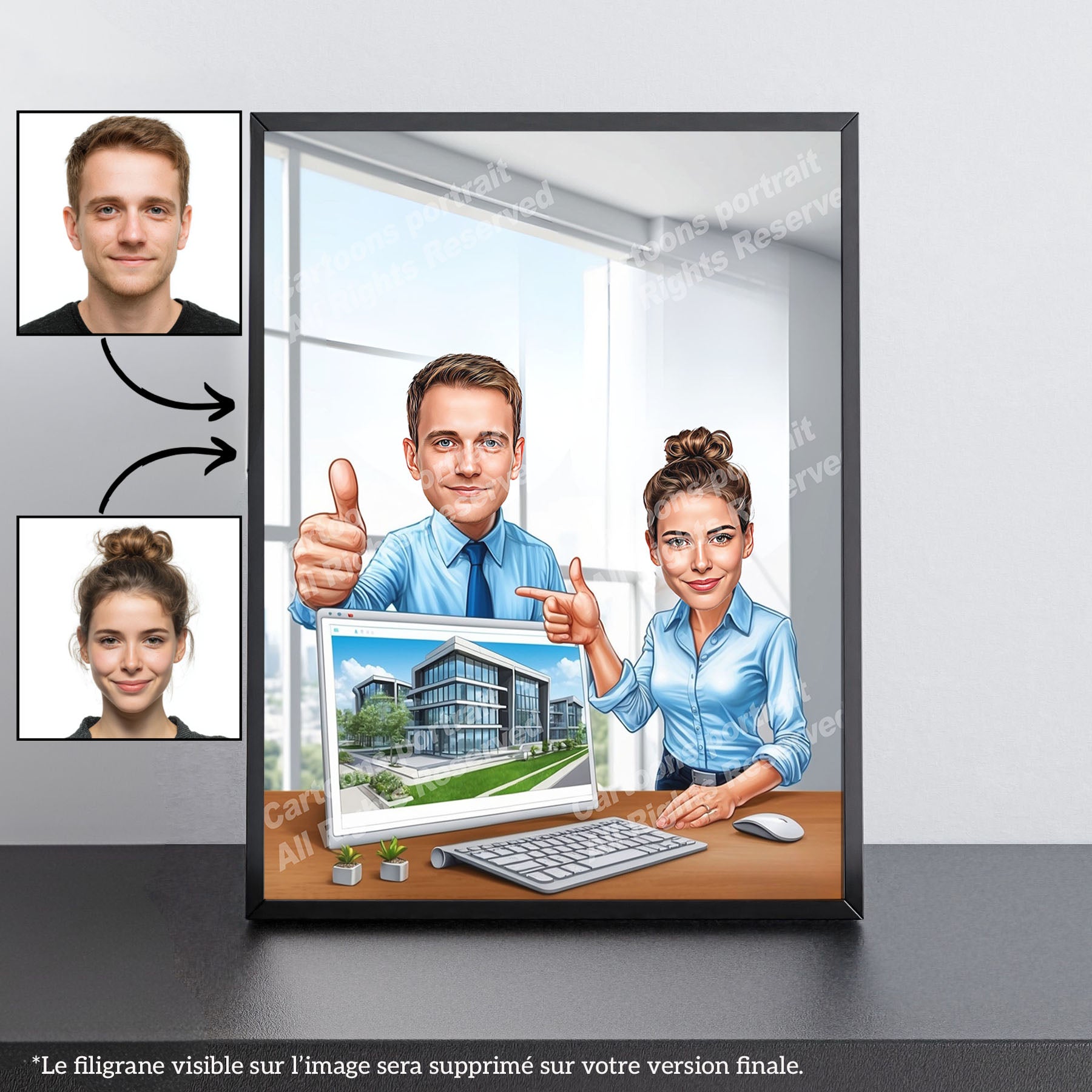 Chaque caricature étant réalisée avec vos photos, nous ne proposons pas d’aperçu avant la commande.