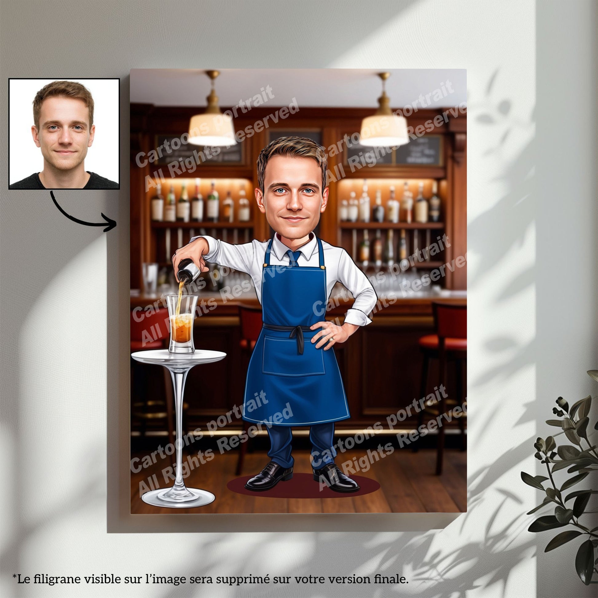 Vous cherchez un cadeau pour un barman ou une barmaid ? Nos caricatures personnalisées sont le choix parfait ! Transformez une simple photo en un souvenir inoubliable.