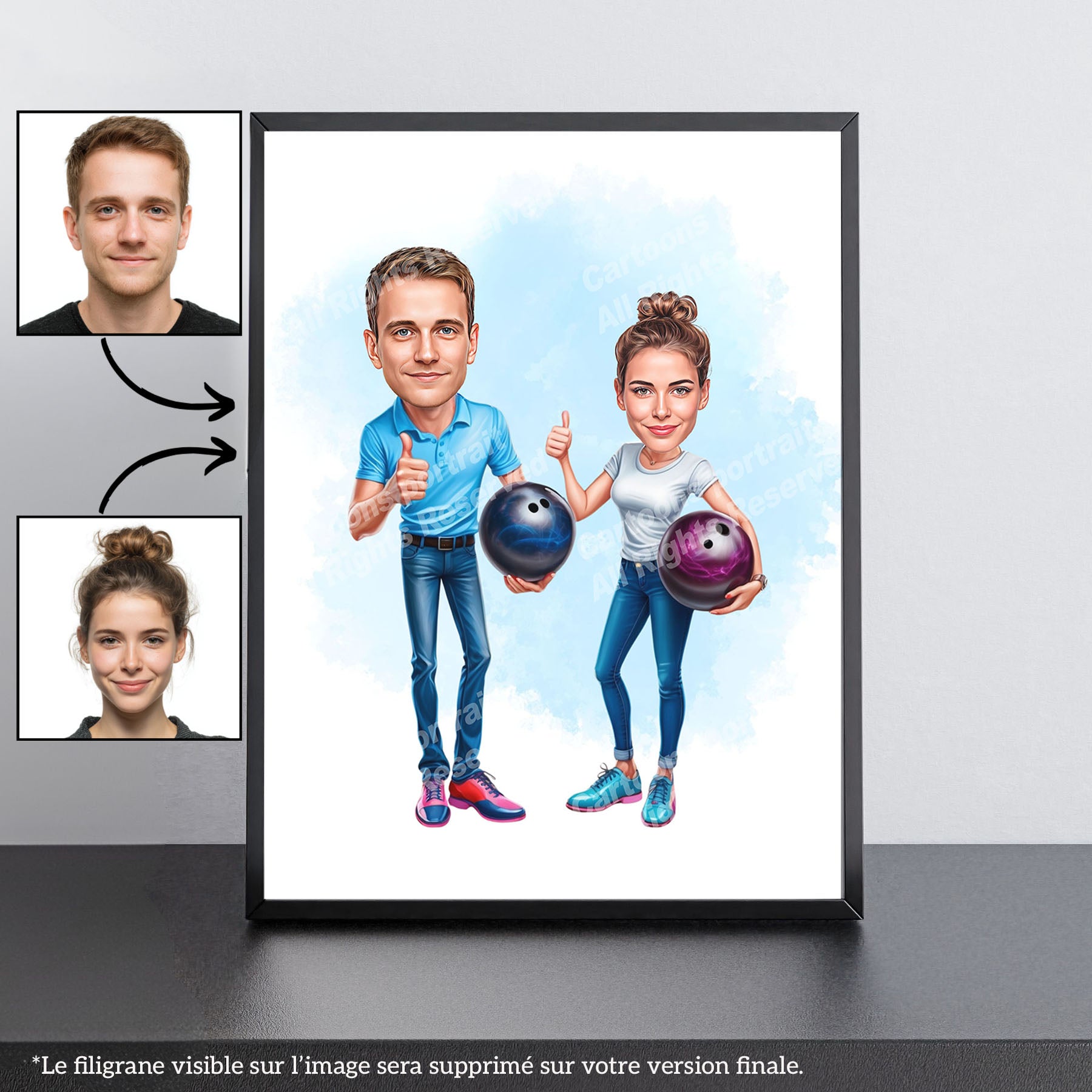 Vous cherchez un cadeau pour un joueur ou une joueuse de bowling ? Nos caricatures personnalisées sont le choix parfait ! Transformez une simple photo en un souvenir inoubliable.