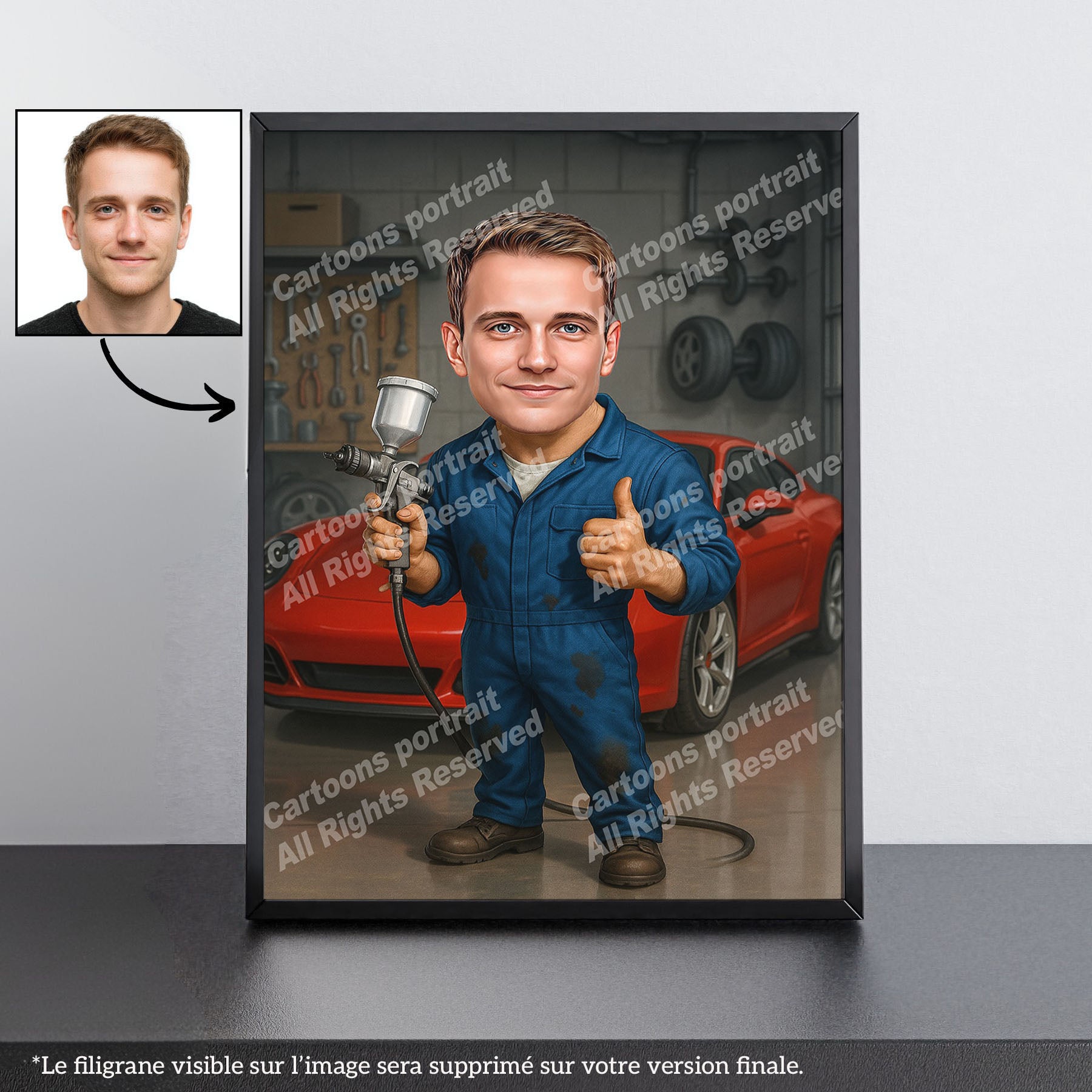Vous cherchez un cadeau pour un carrossier ou une carrossière ? Nos caricatures personnalisées sont le choix parfait ! Transformez une simple photo en un souvenir inoubliable.
