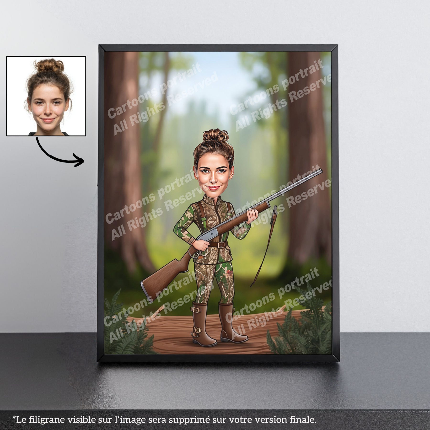 Vous cherchez un cadeau pour un chasseur ou une chasseuse ? Nos caricatures personnalisées sont le choix parfait ! Transformez une simple photo en un souvenir inoubliable.