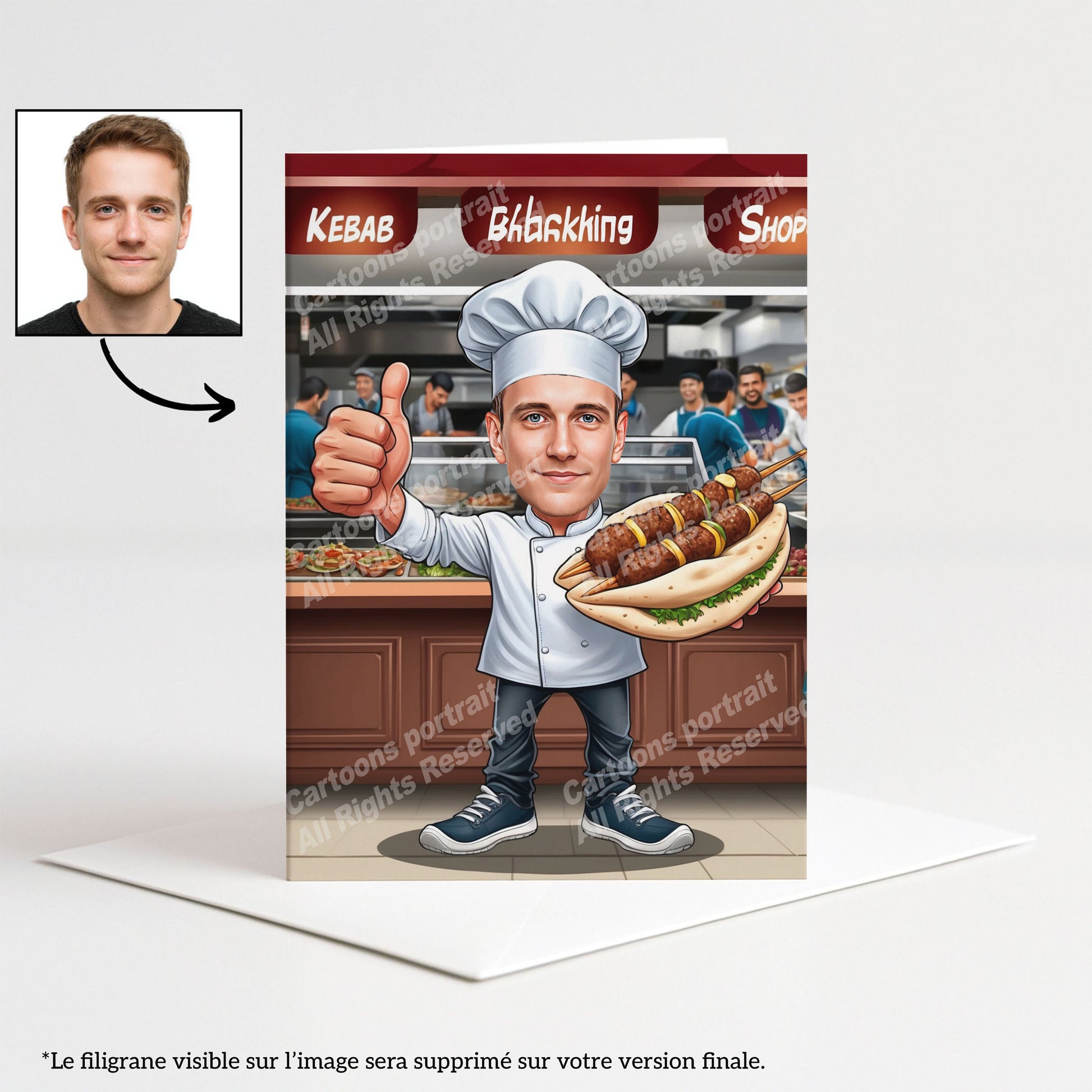 Vous cherchez un cadeau pour un chef kebab ? Nos caricatures personnalisées sont le choix parfait ! Transformez une simple photo en un souvenir inoubliable.