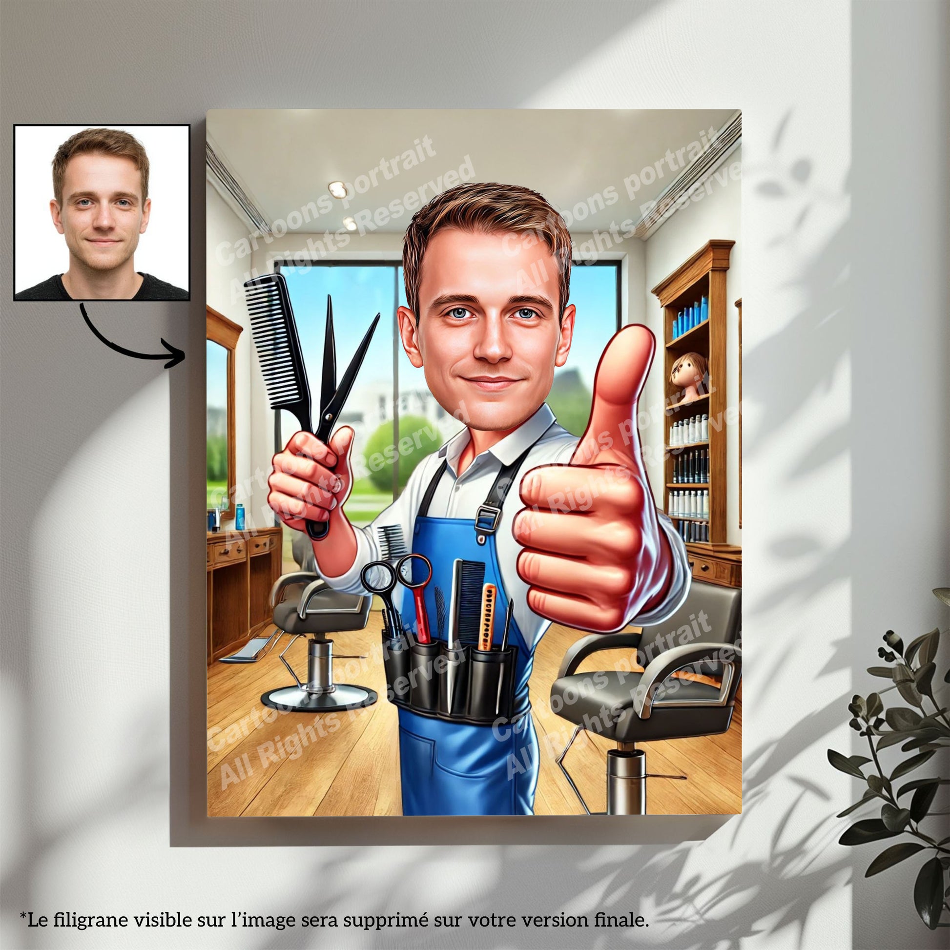 Vous cherchez un cadeau pour un coiffeur ou une coiffeuse ? Nos caricatures personnalisées sont le choix parfait ! Transformez une simple photo en un souvenir inoubliable.
