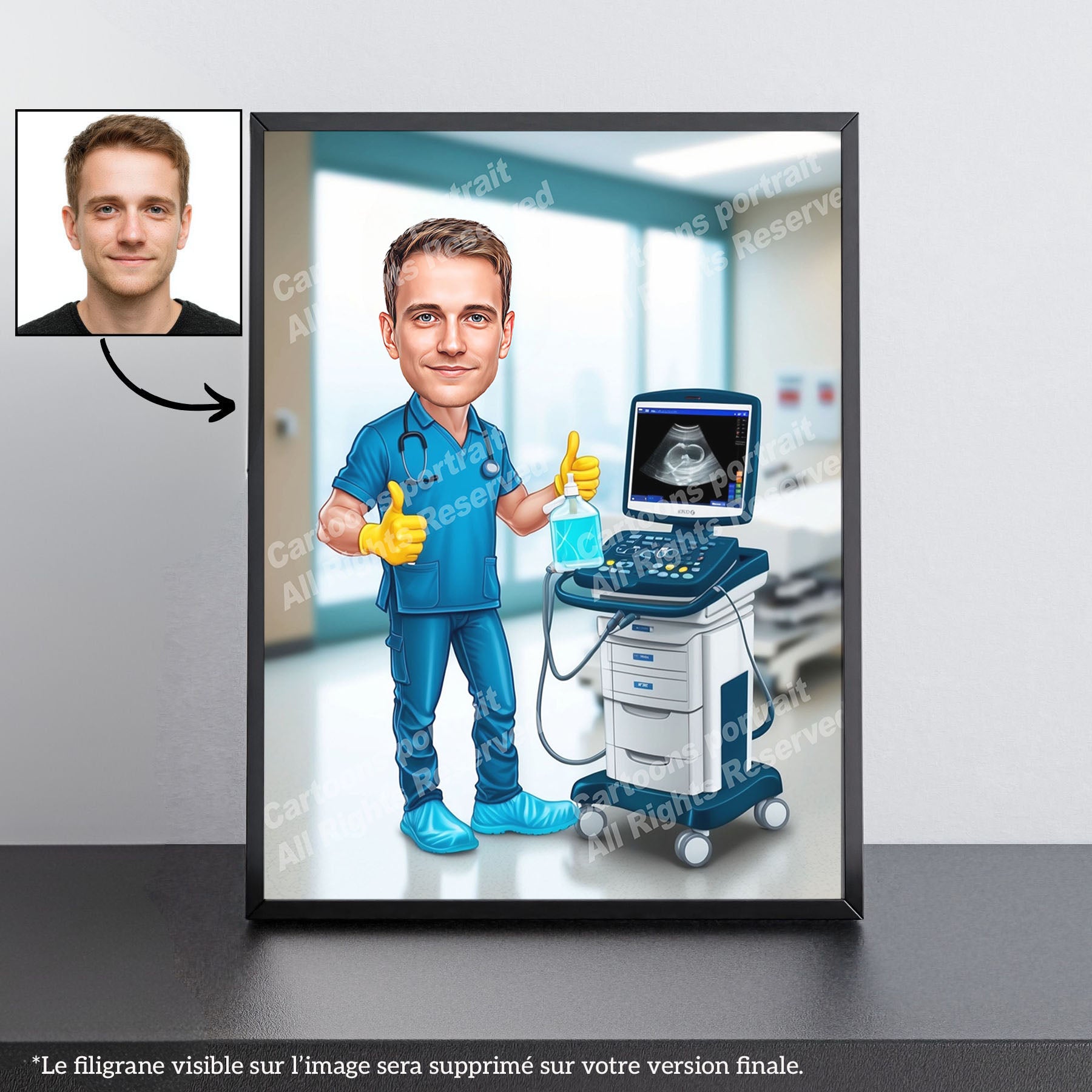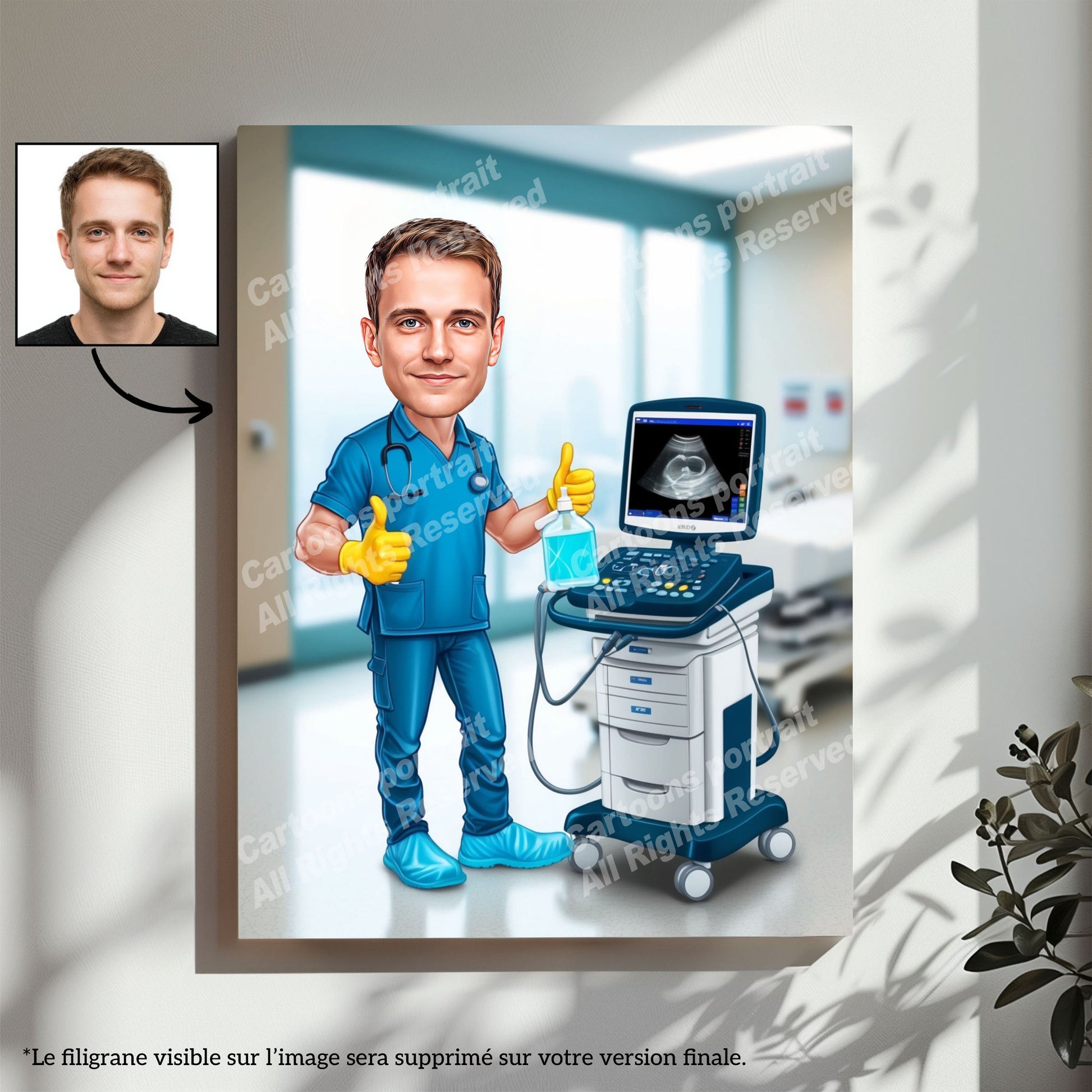 Vous cherchez un cadeau pour un échographiste ? Nos caricatures personnalisées sont le choix parfait ! Transformez une simple photo en un souvenir inoubliable.