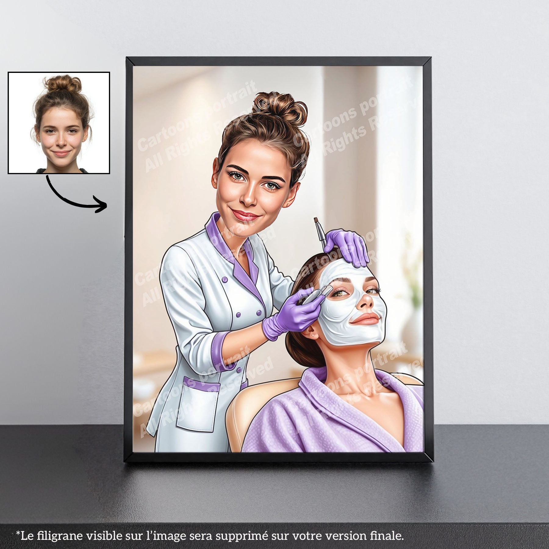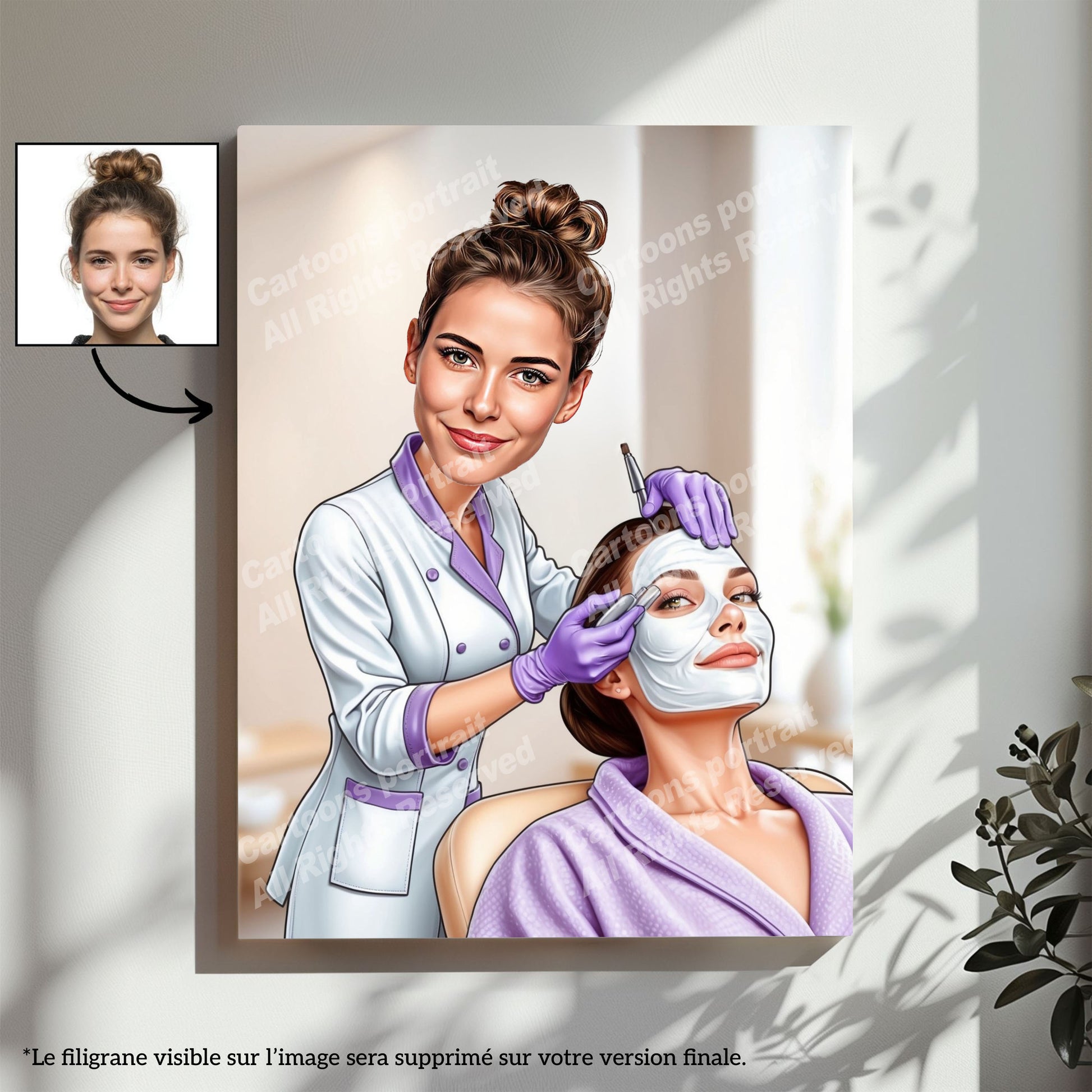 Vous cherchez un cadeau pour un(e) esthéticien(ne) ? Nos caricatures personnalisées sont le choix parfait ! Transformez une simple photo en un souvenir inoubliable.