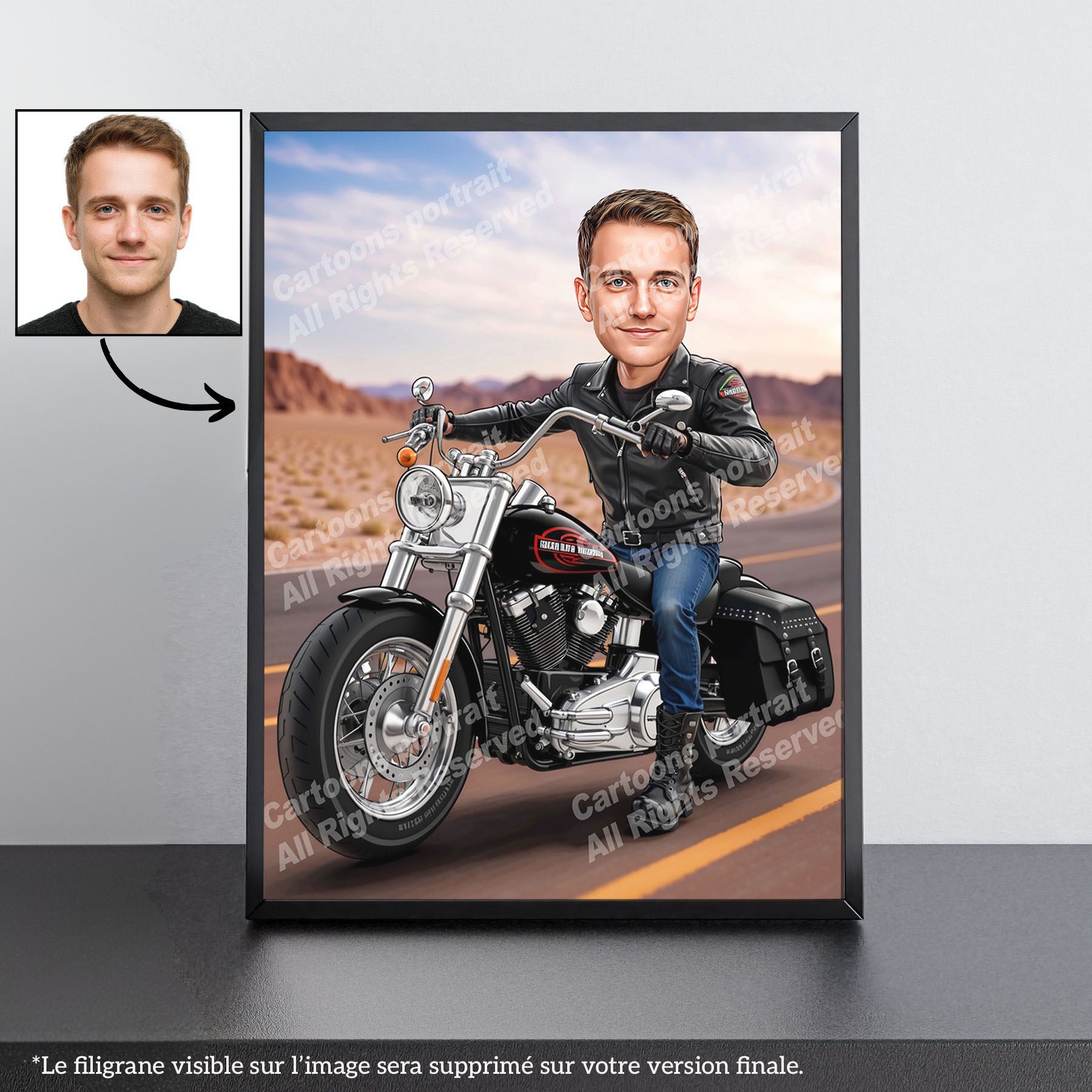 Vous cherchez un cadeau pour un motard ou une motarde Harley ? Nos caricatures personnalisées sont le choix parfait ! Transformez une simple photo en un souvenir inoubliable.