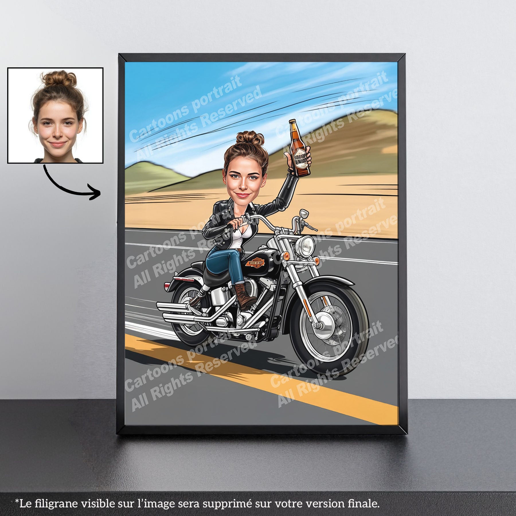 Vous cherchez un cadeau pour un motard ou une motarde fan de Harley ? Nos caricatures personnalisées sont le choix parfait ! Transformez une simple photo en un souvenir inoubliable.