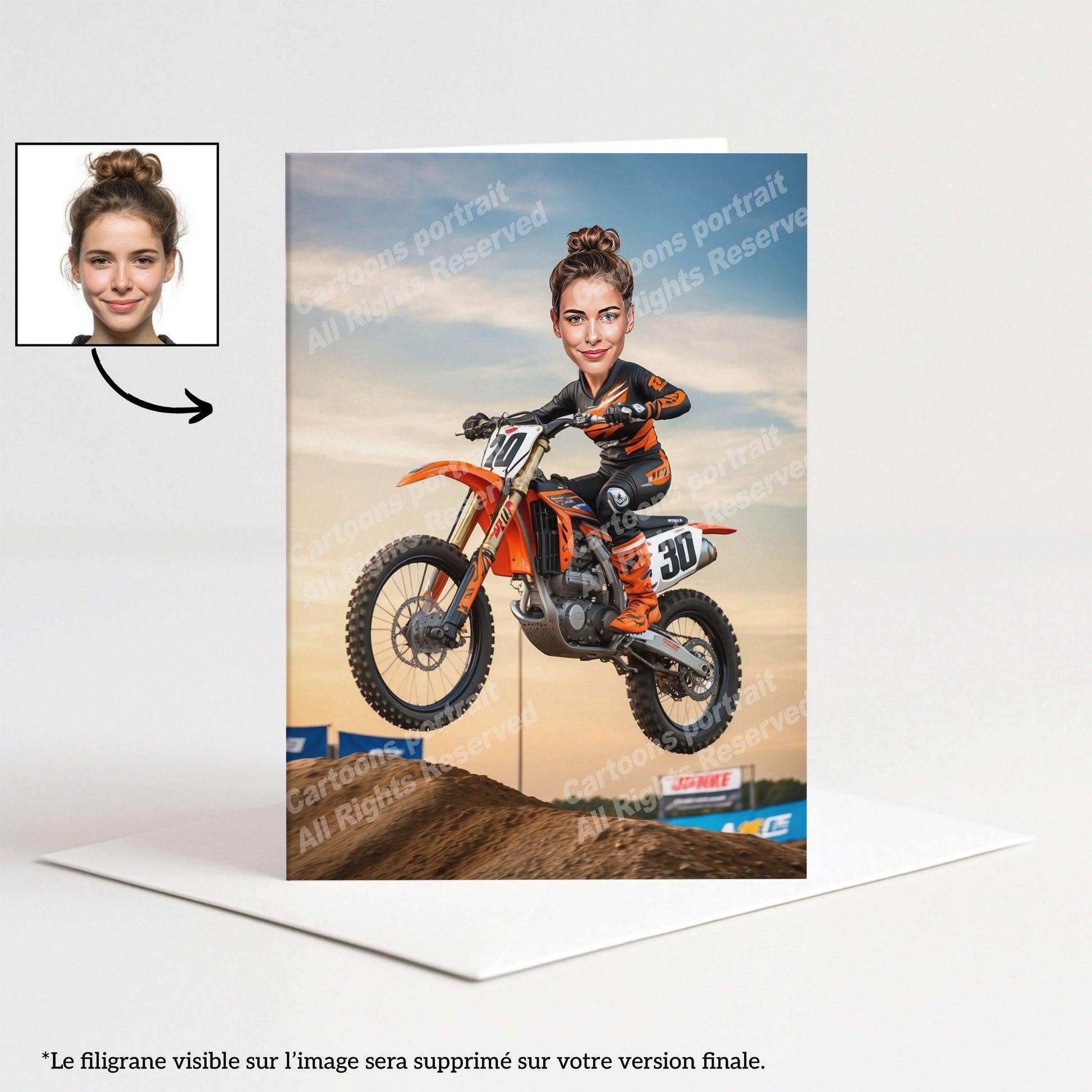 Vous cherchez un cadeau pour un amateur ou une amatrice de motocross ? Nos caricatures personnalisées sont le choix parfait ! Transformez une simple photo en un souvenir inoubliable.