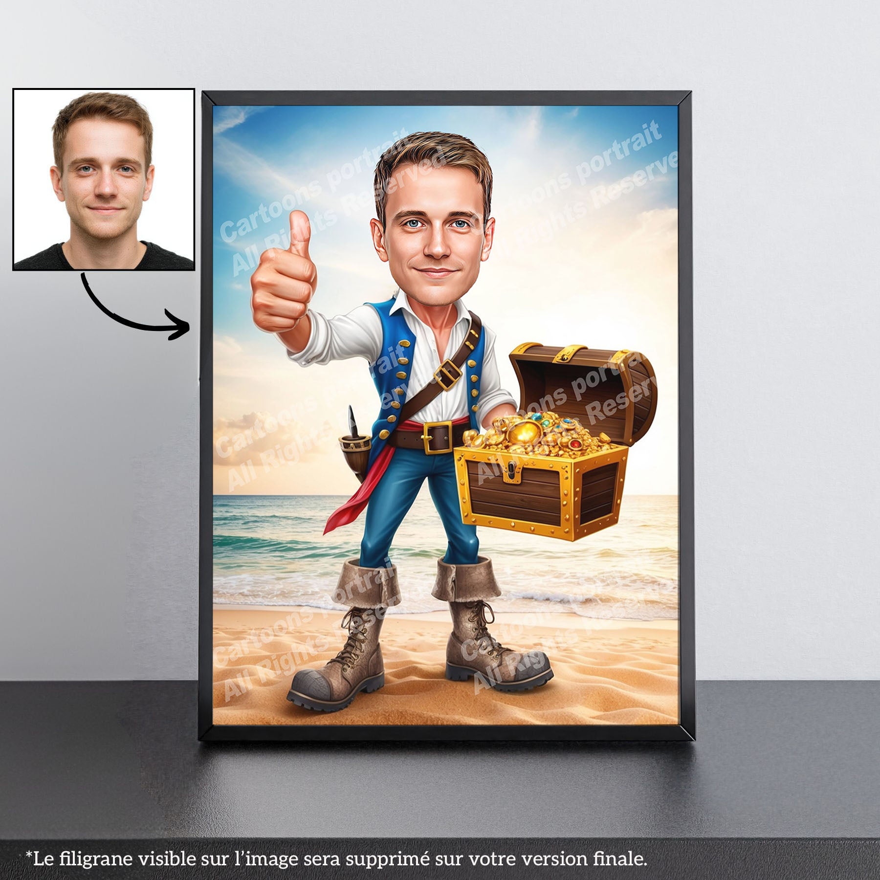 Looking for a unique pirate gift? Send us a photo and we’ll create a personalized pirate cartoon caricature with a fun adventure vibe. Fully customizable with unlimited revisions, perfect for a birthday gift, party surprise, or pirate-themed decor.