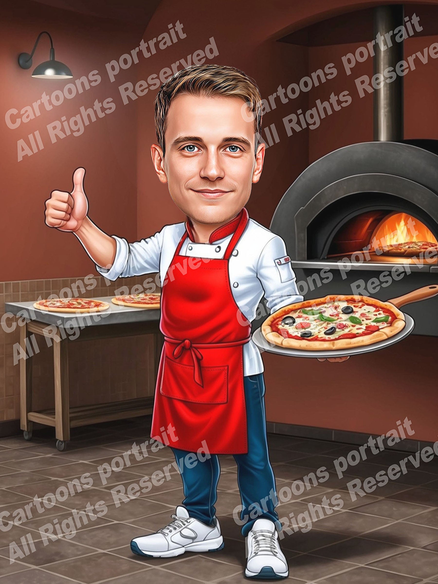 Looking for a unique pizza maker gift? Send us a photo and we’ll create a personalized pizza maker cartoon caricature with a fun kitchen vibe. Fully customizable with unlimited revisions, perfect for a birthday gift, work milestone, or restaurant decor.
