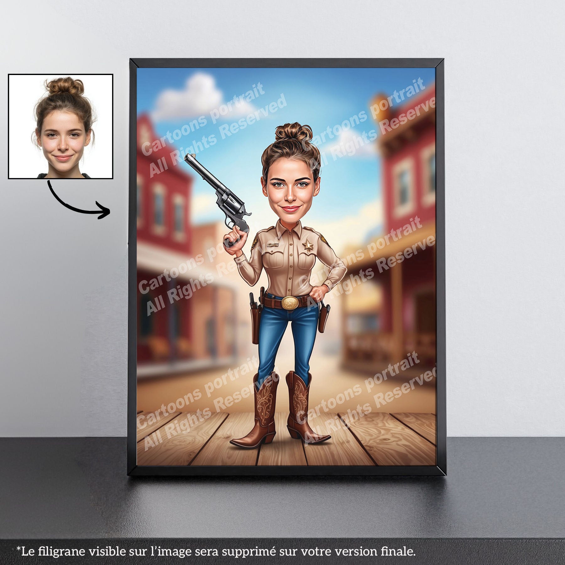 Vous cherchez un cadeau pour un shérif ou une shériffe ? Nos caricatures personnalisées sont le choix parfait ! Transformez une simple photo en un souvenir inoubliable.